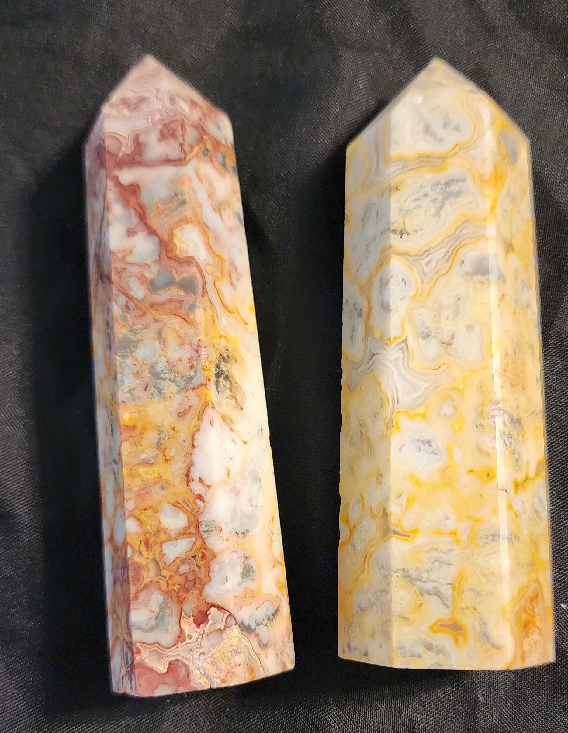 Experience the mesmerizing patterns and vibrant colors of our Crazy Lace Agate. This striking stone features bright yellows, reds, and creams in unique tower formations. Perfect for adding a pop of color to your collection or as a thoughtful gift for any crystal lover.