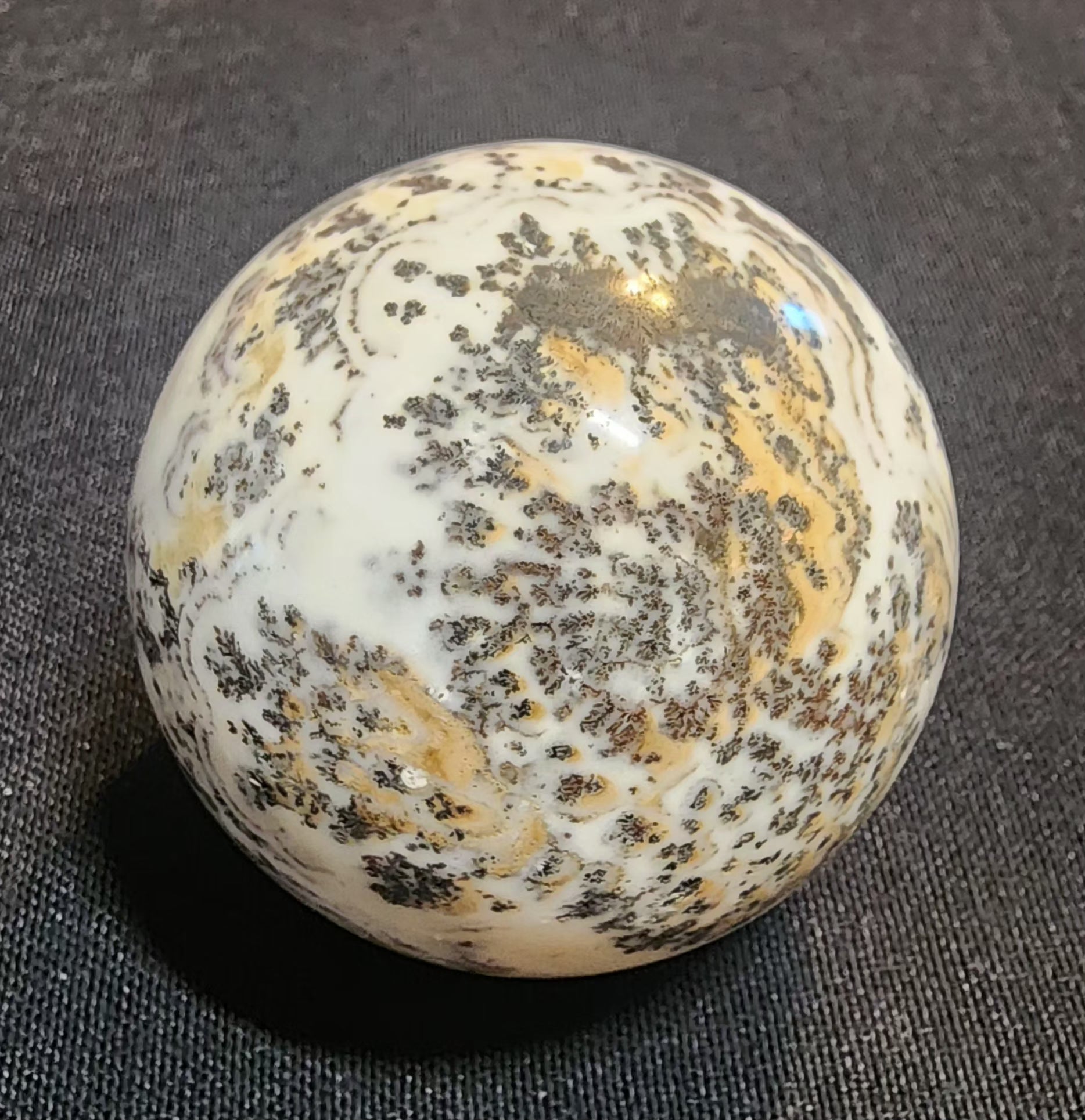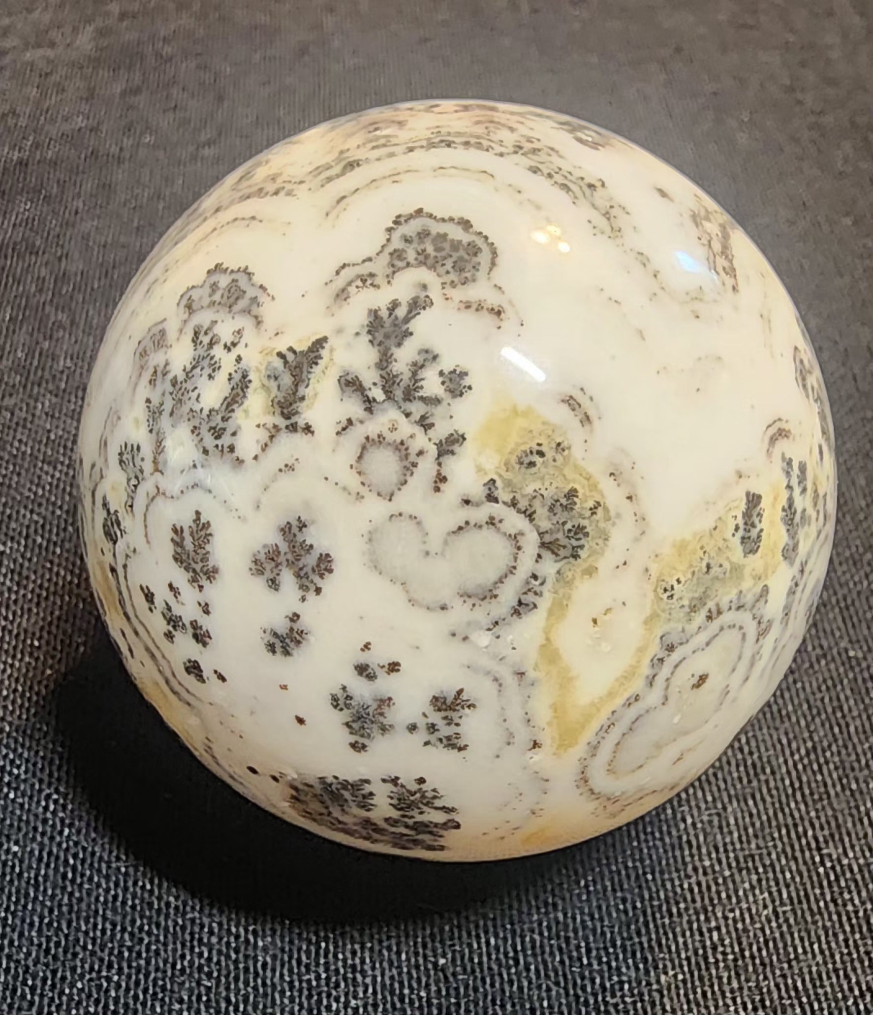 The lovely whites and yellows of this sphere are accentuated magically with the fernlike dendrites!