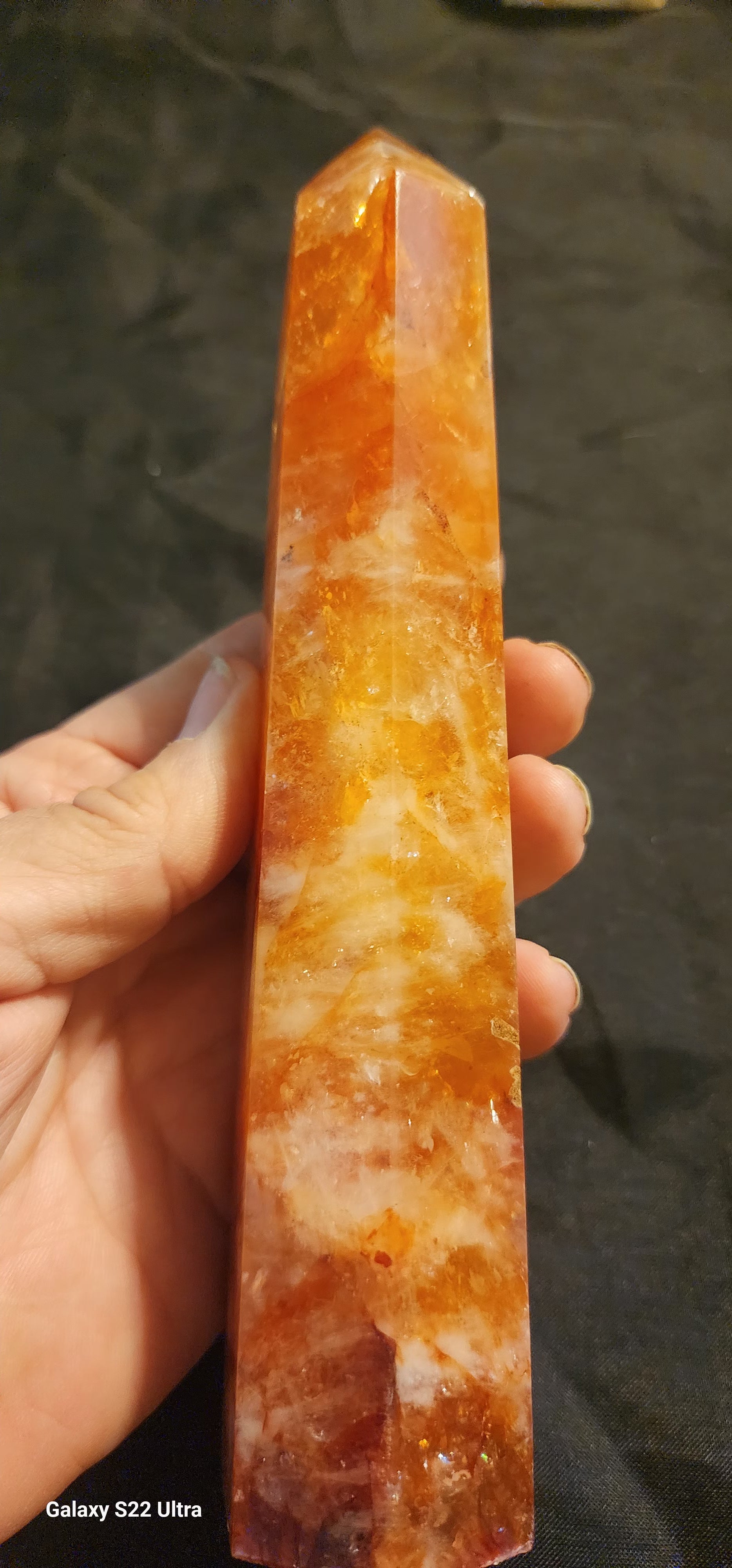 Experience the stunning beauty and energy of Fire Quartz. This unique crystal, with its deep reddish-orange tones, will captivate and inspire you. Its tower shape adds depth to its already powerful presence. Add this rare gem to your collection and embrace its fiery energy.